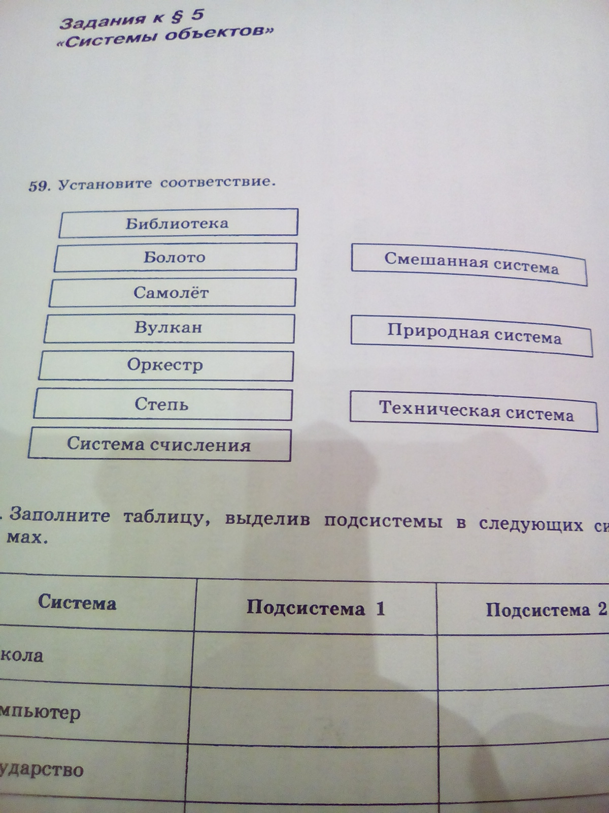 Природная система -Болото,степь ,вулкан . Технические - самолёт , . Смешанная - библиотекарш оркестр система счисления