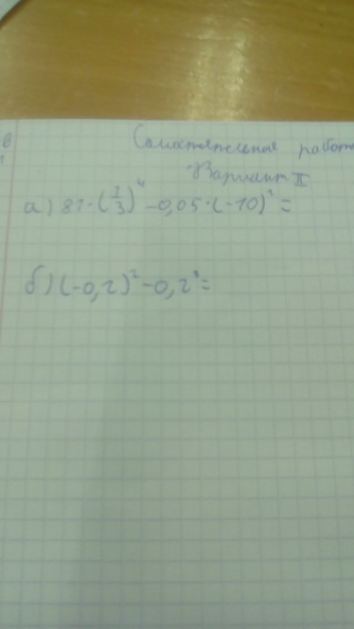 б)(-0.2)²-0,2³=(-2/10)²-(2/10)³=4/1000-8/1000=40-8/1000=32/1000=0,032