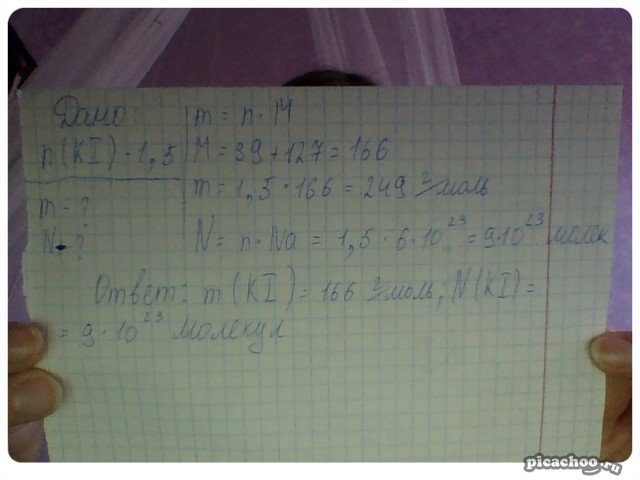 m(KI) = n*M = 1,5 моль * 166 г/моль = 249 г