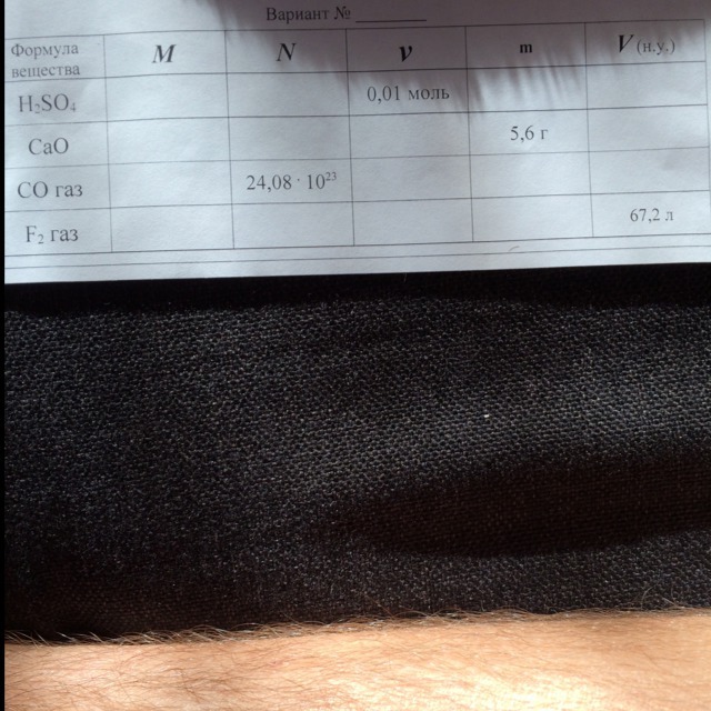 2) M(CaO)=40+16=56 г/моль нью=m/M = 5,6 г/ 56 г = 0,1 V=Vm x нью V= 22,4 л/моль х 0,1 моль = 2,24 л N=Na x нью = 6,02 х 10^23 x 0,1 = 0,602 х 10 ^23 (тут не уверенна пересчитай)