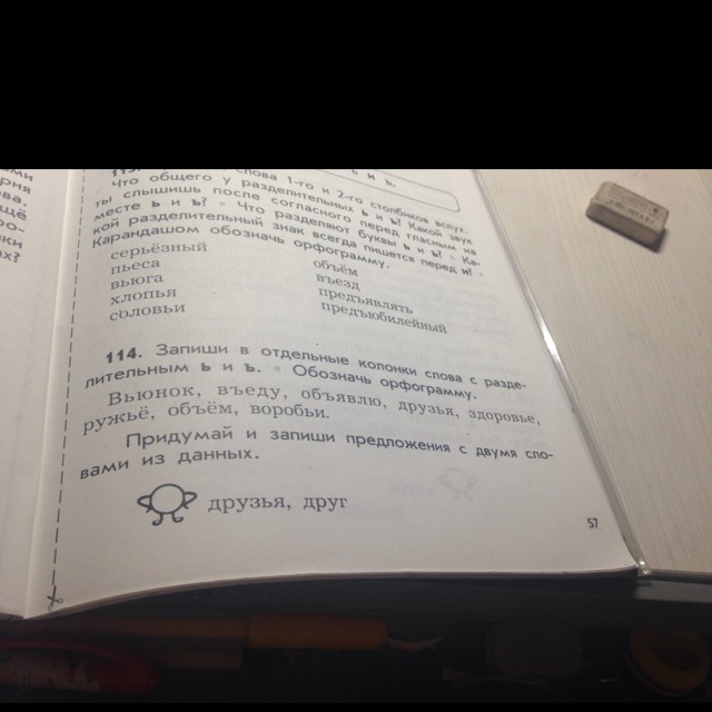 Вьюнок(1),въеду(2),объявлю(2),друзья(1),здоровье(1),ружье(1),объем(2), воробьи(1).Под номером 1 мягкий знак под 2 твердый!