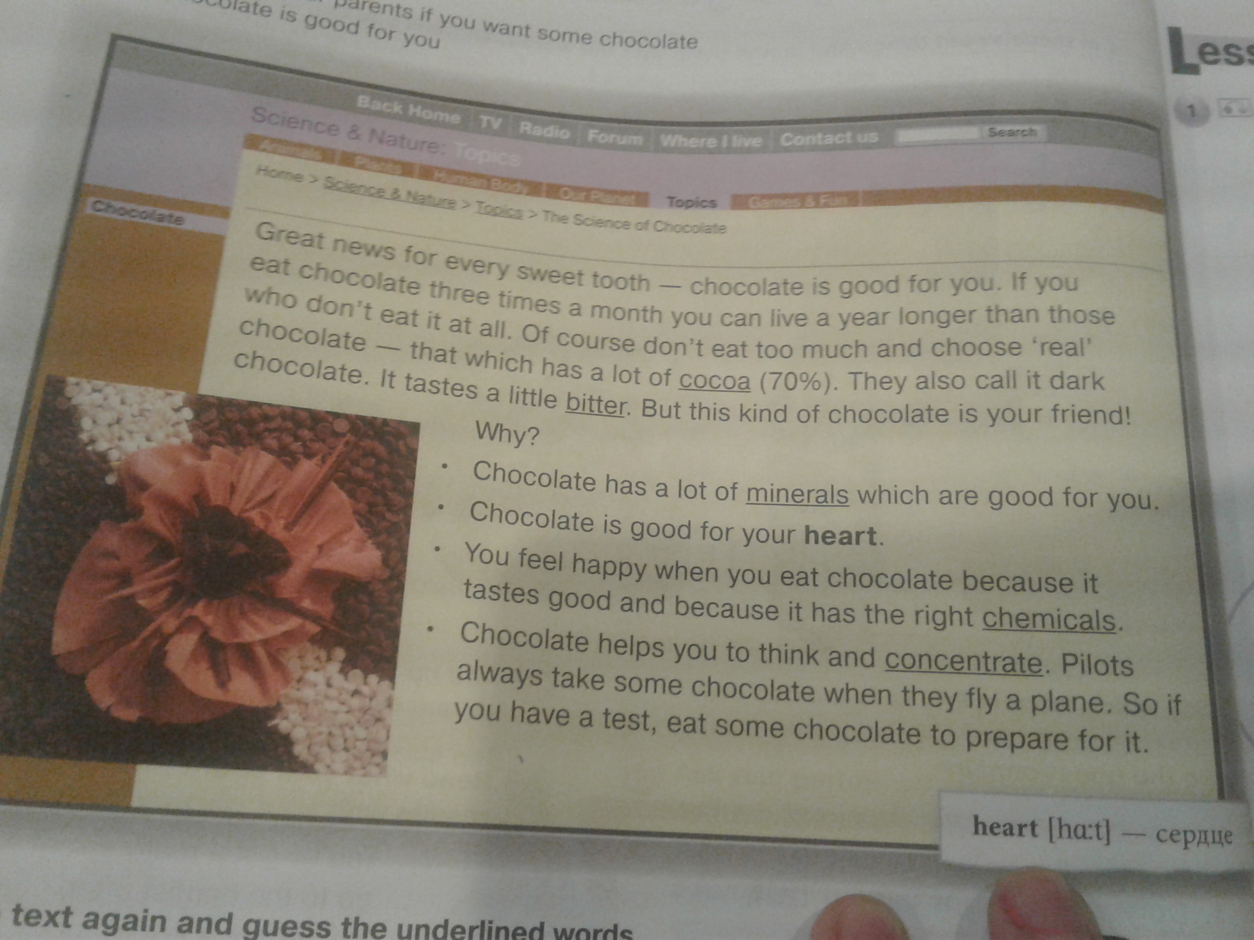 2.because chocolate helps people to think and to concentrate.