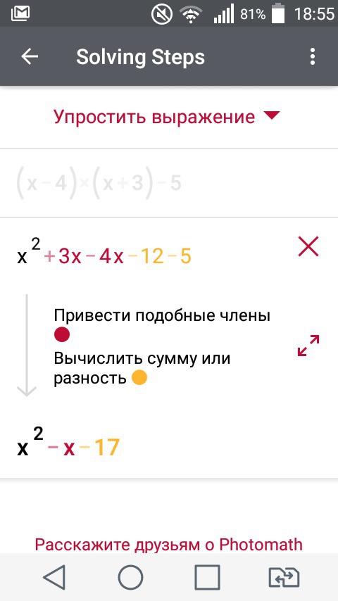 Вот ответ. Х во второй степни минус х минус 17