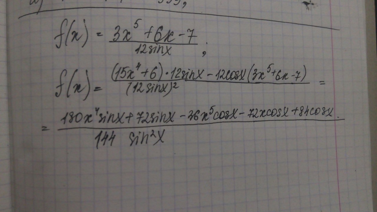 вычислите производную f(x)= 3x^5+6x-7/12*sin x