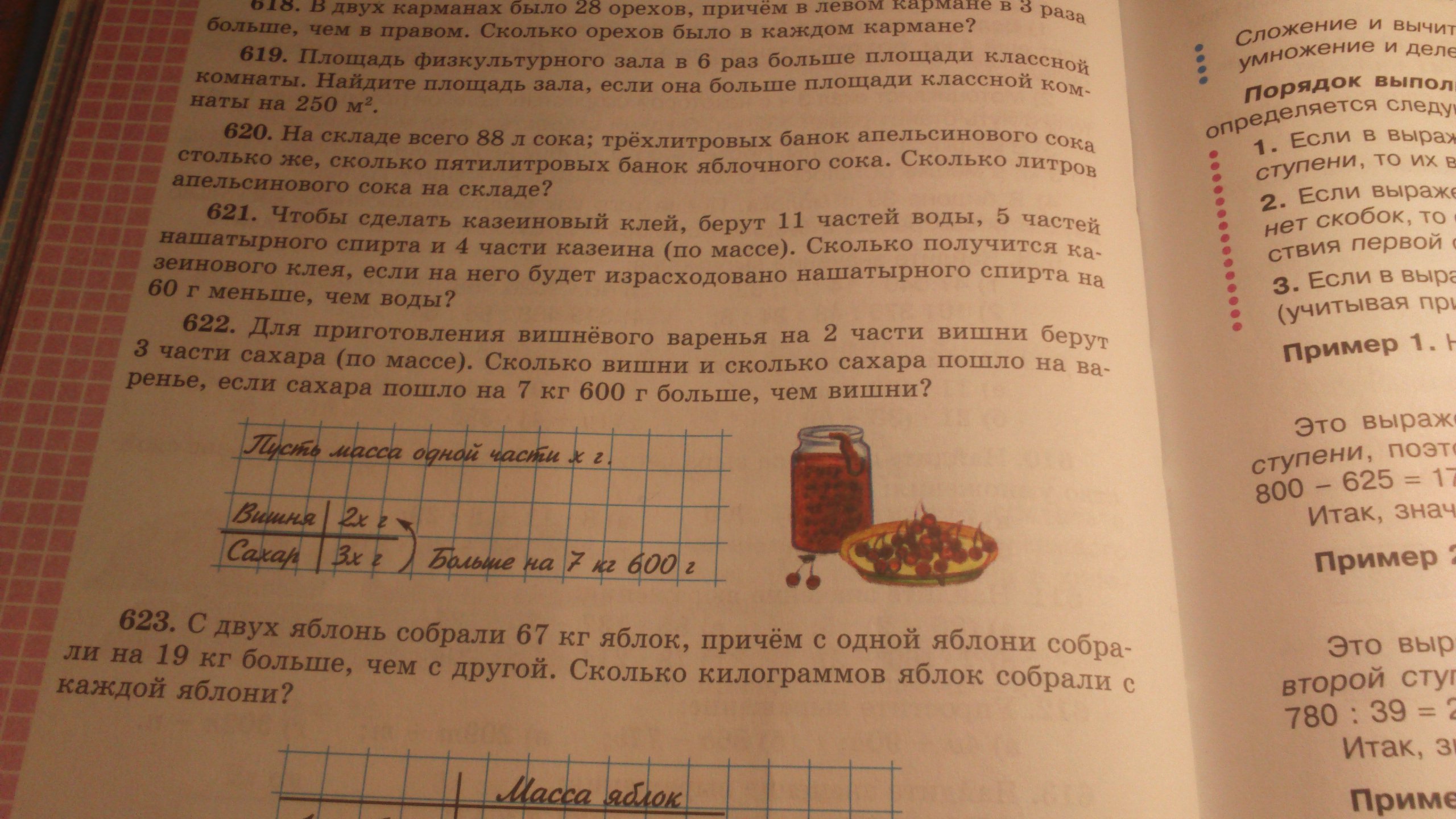 Ответ: всего было 15 кг 200 гр вишни и 21кг800гр сахара