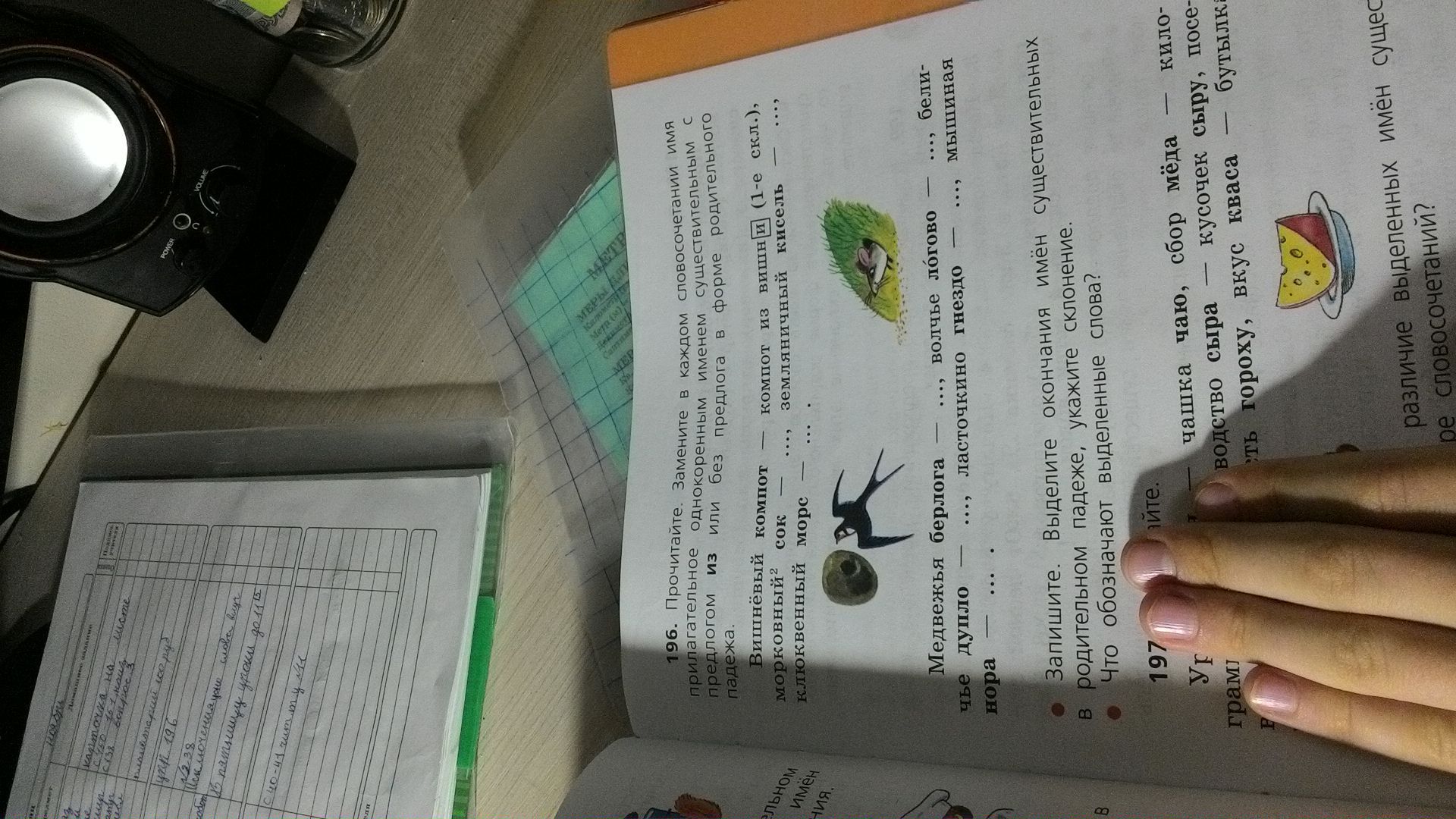 Медвежья берлога - берлога медведя (окончание - я, 2 скл.), волчье логово - логово волка (окончание -а, 2 скл.), беличье дупло - дупло белки (окончание -и, 1 скл.), ласточкино гнездо - гнездо ласточки (окончание -и, 1 скл.), мышиная нора - нора мыши (окончание -и, 3 скл.).