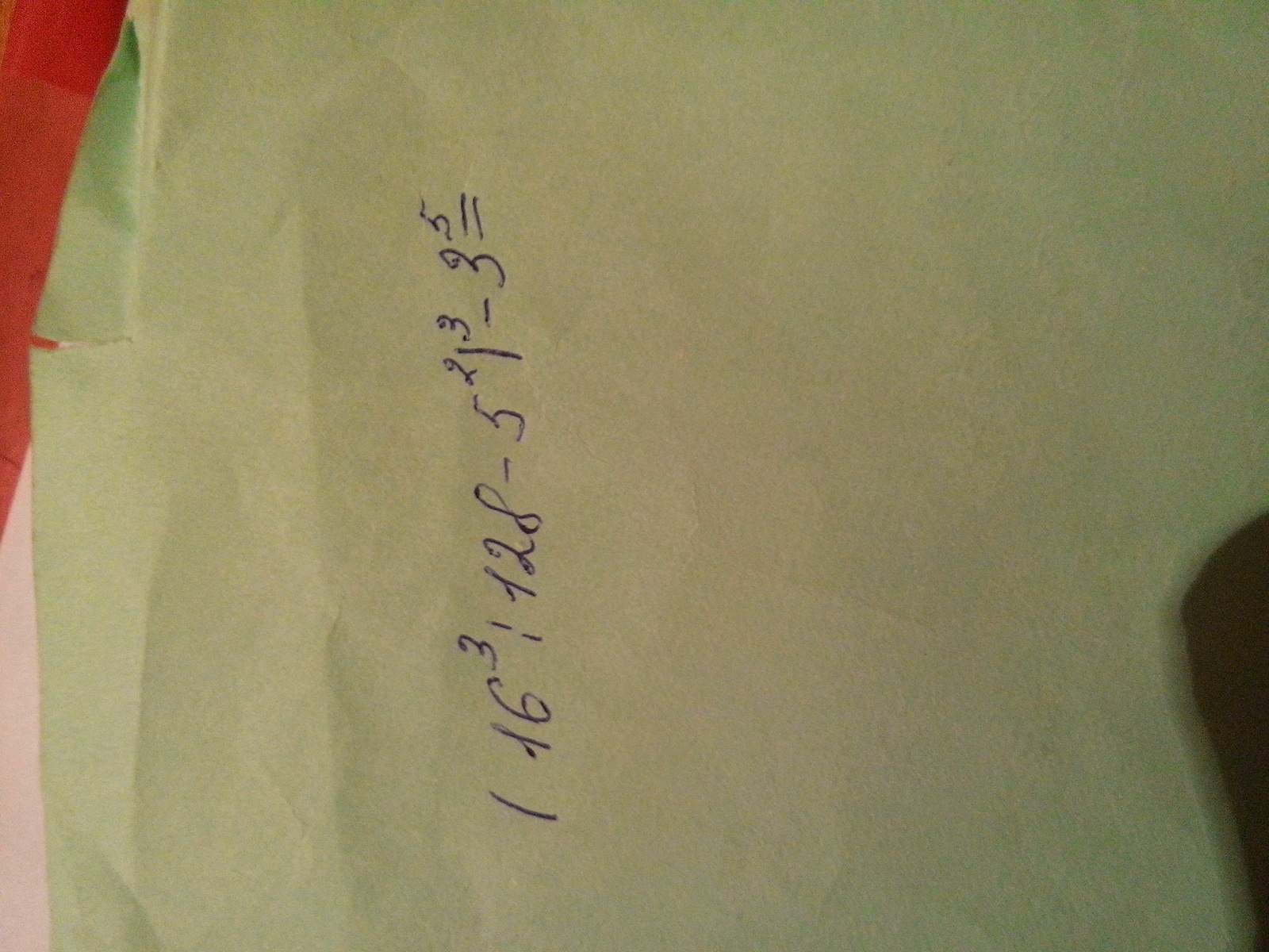 1)16*16*16=4096, 2)4096:128=32. 3)5*5=25. 4)32-25=7 5)7*7*7=343. 6)3*3*3*3*3=243. 7)343-243=100