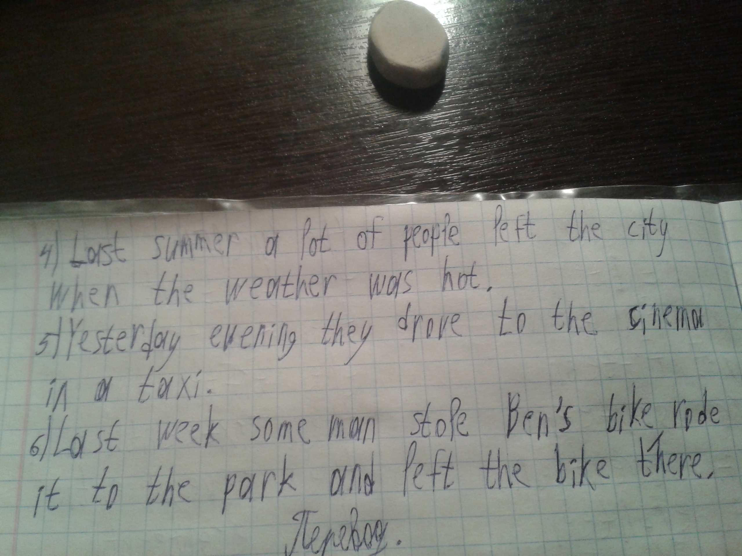 3)На прошлой недели несколько человек взяли велосипед Бена , чтобы покататься в парке и оставили кг здесь