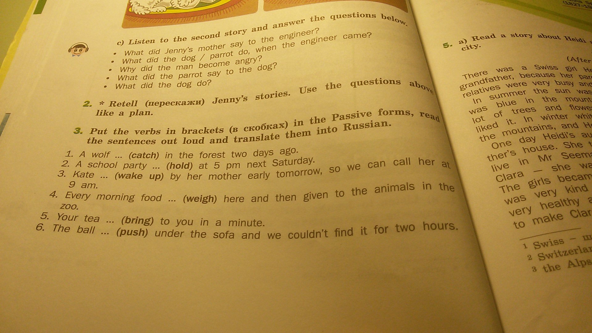 was caught, will be held, will be woken up, is weighed, will be brought, was pushed