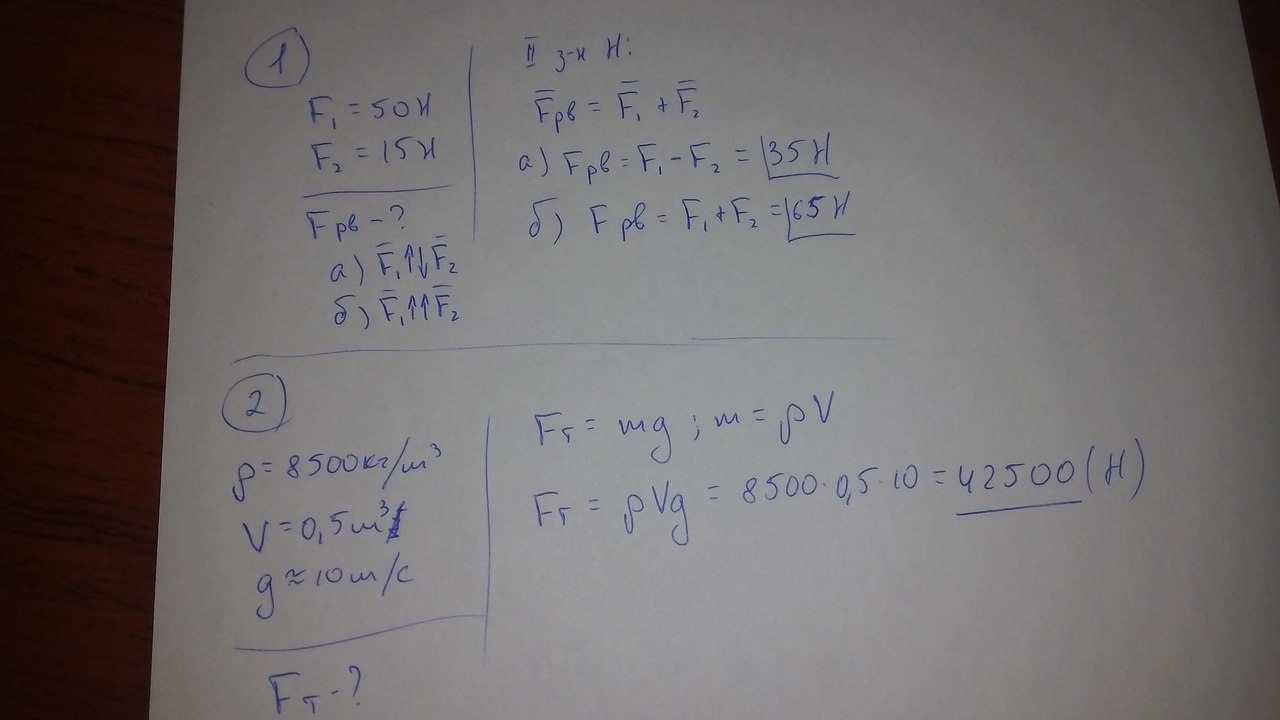 1.На тело действуют 2 силы 50Н и 15Н.Чему равно равнодействующая этих сил, если силы направлены в противоположные стороны?Силы направлены в одну и ту же сторону?