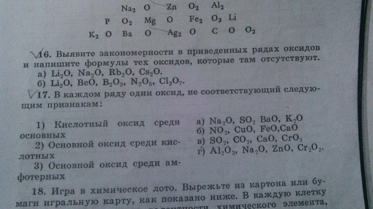 16.Выявите законосерности в приведенных рядах оксидов и напишите формулы тех оксидов, которые там отсутствыют.