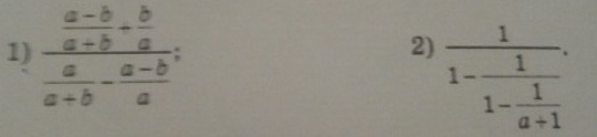 1) (a-b)/(a+b)+b/a)=(a(a-b)+b(a+b))/(a(a+b))=(a²-ab+ab+b²)/(a(a+b))=