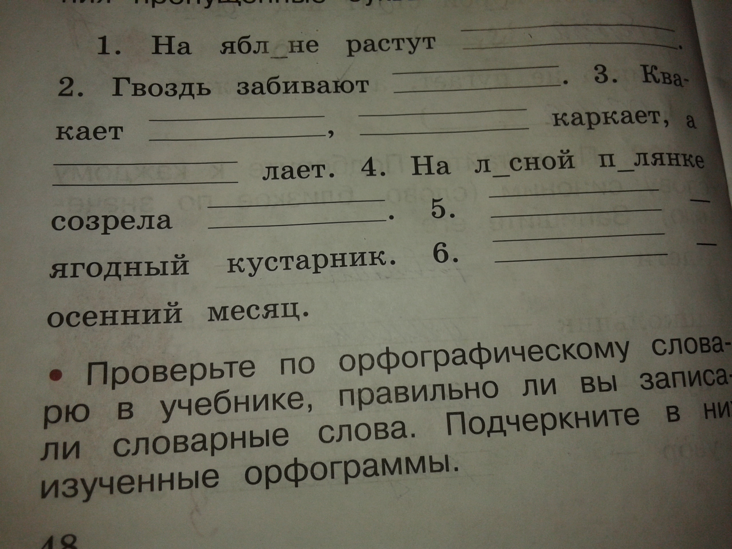 На яблоне не растут груши и персики.Гвоздь вбивают в стену.Квакает лягушка.ворона каркает.а собака лает.На лесной полянке созрела ежевика.Малина-ягодный кустарник.Октябрь-осенний месяц.