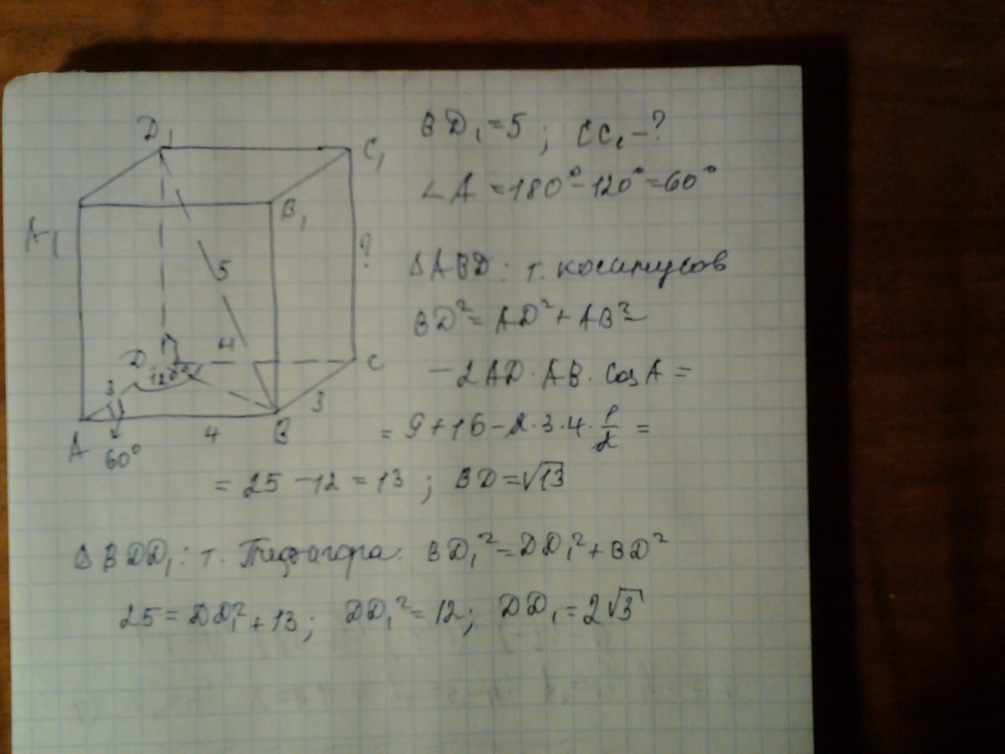 . Знайдіть бічне ребро паралелепіпеда, якщо його менша діагональ дорівнює 5 см. - Помогите решить пожалуйста, срочно!