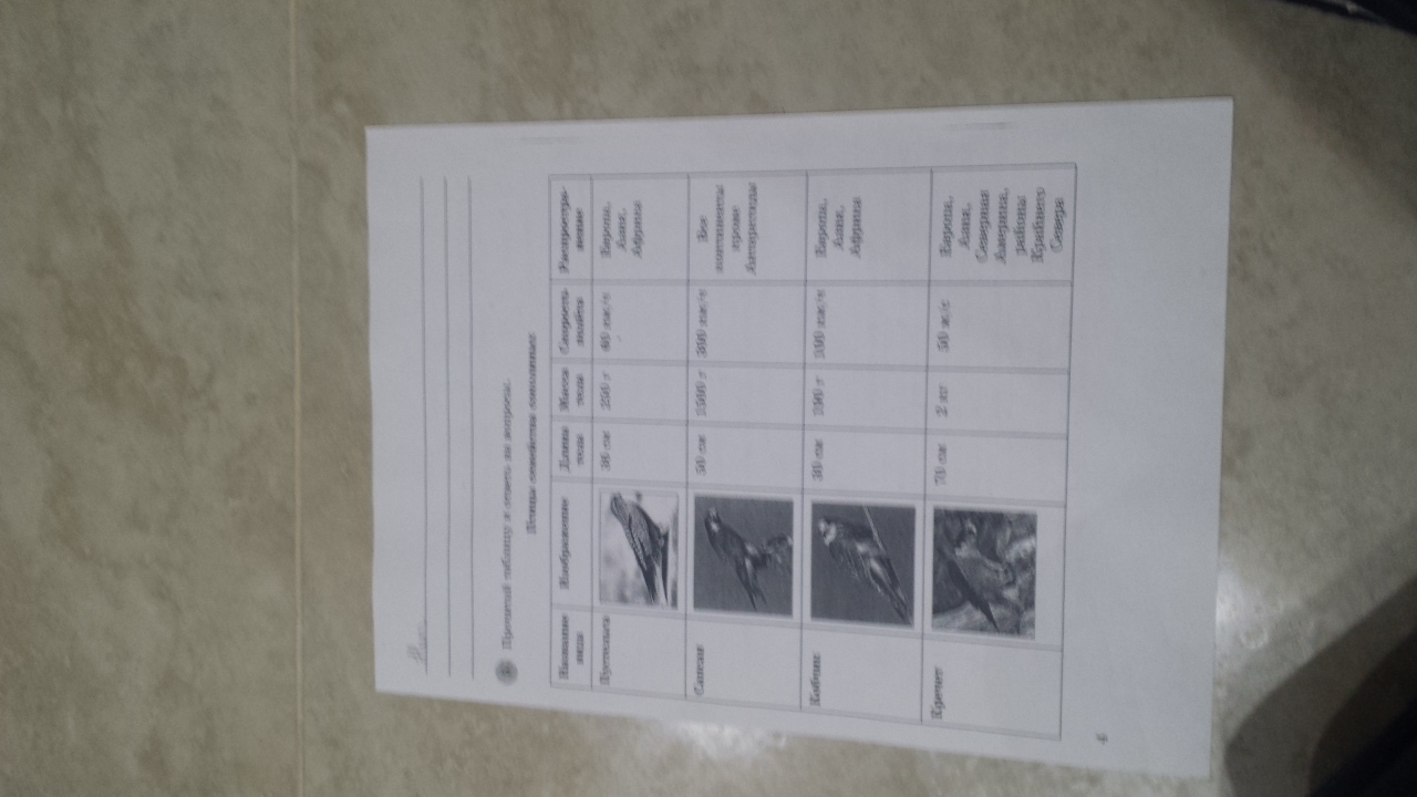 Придумай свою задачу,используя любые данные, приведенные в тексте или в таблице. Запиши ее условие, вопрос, решение и ответ.( Кто из пернатых пилотов летает быстрее всех?)