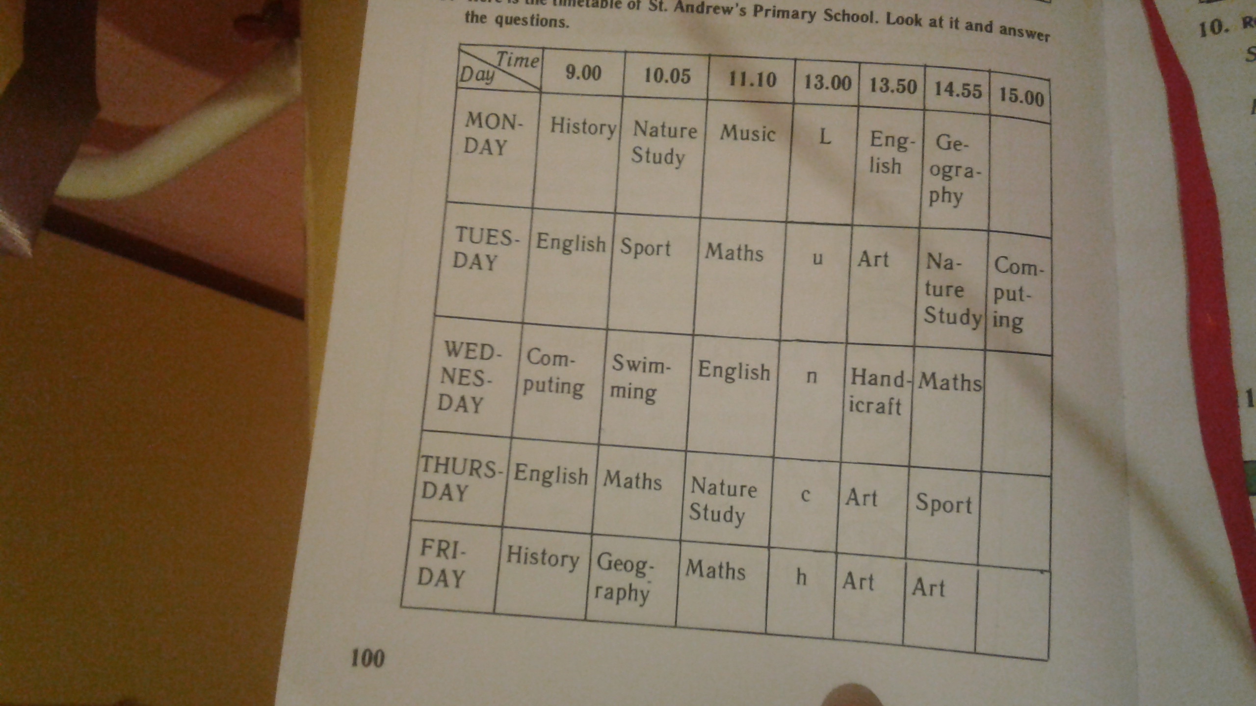 4) Say what subjects have you got on your timetable?