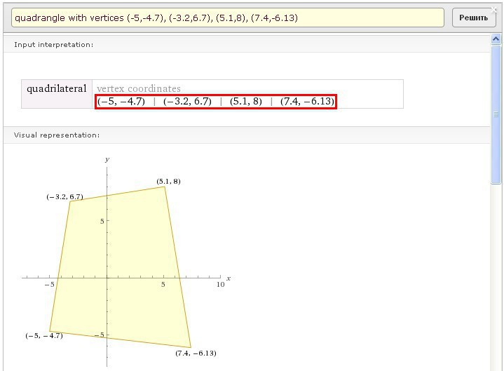 Writeln('Введите координаты четырех точек (парами х,y)');