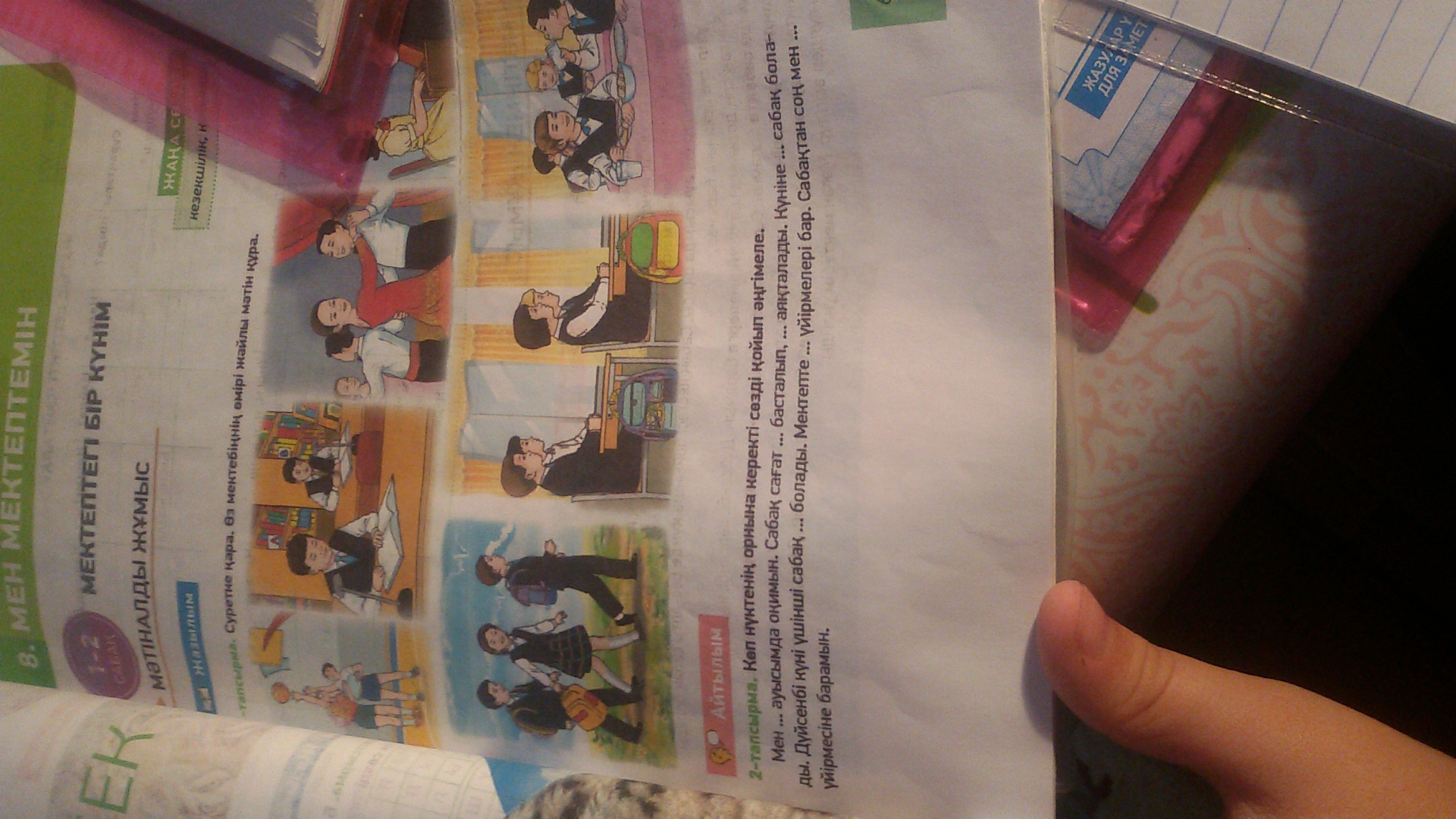 мен түскі ауысымда оқимын.сабақ сағат 12 де басталып 16:00 аяқталады.Күніне5/6 сабақ болады.дүйсенбі куні үшінші сабақ қазақ тілі болады. мектепте би үйірмелері бар.сабпқьан соң мен би үйіресіне барамын.