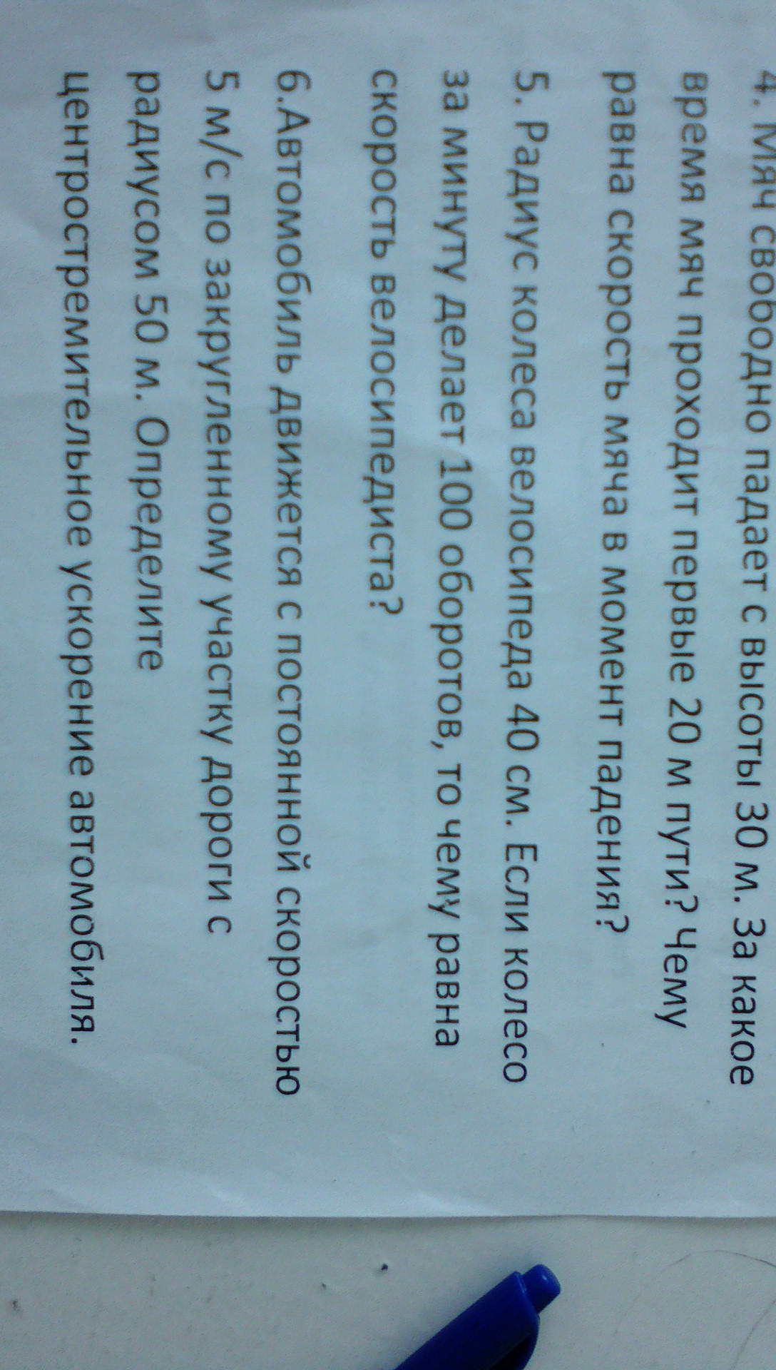5. За минуту велосипедист проезжает расстояние, равное 1000 длин окружностей колеса, то есть L=1000*(2пR); Значит скорость велосипедиста равна: v=2000пR/60 (м/с);