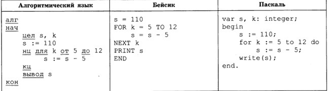 Вычислите результат работы следующей программы. Текст программы приведен на трёх языках программирования