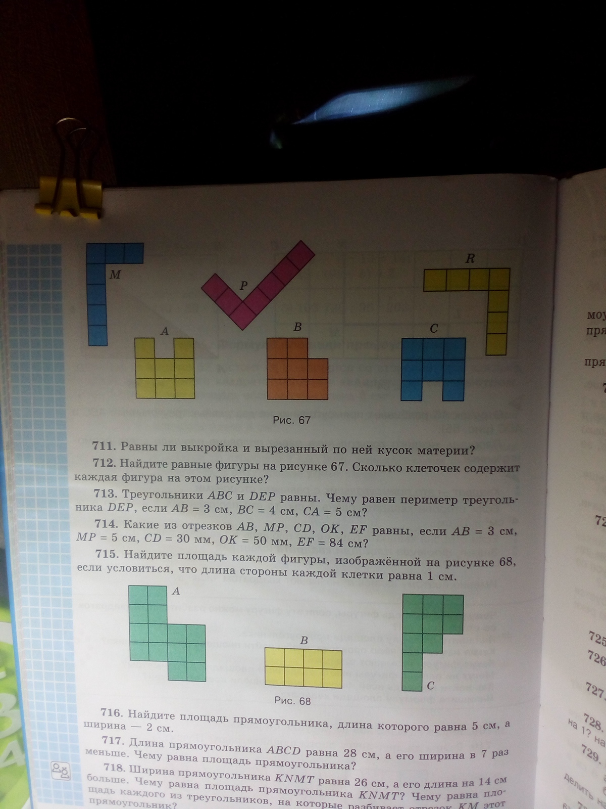 найдите равные фигуры на рисунке 67 . Сколько клеточек содержит каждая фигура на этом рисунке ?