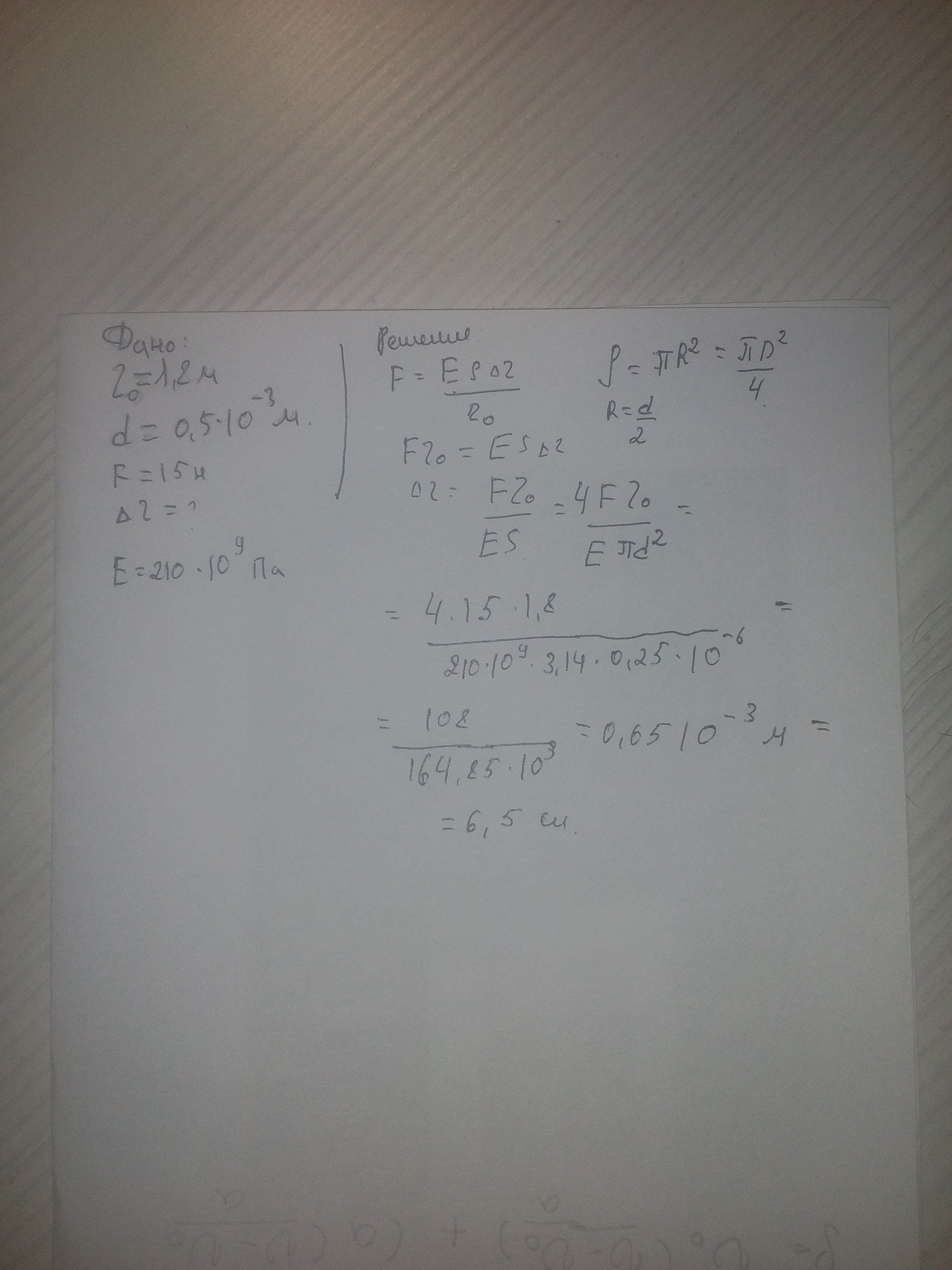 на сколько удлинится стальная проводка длинной 1,8 м и диаметром 0,5 мм под действием груза в 15 н
