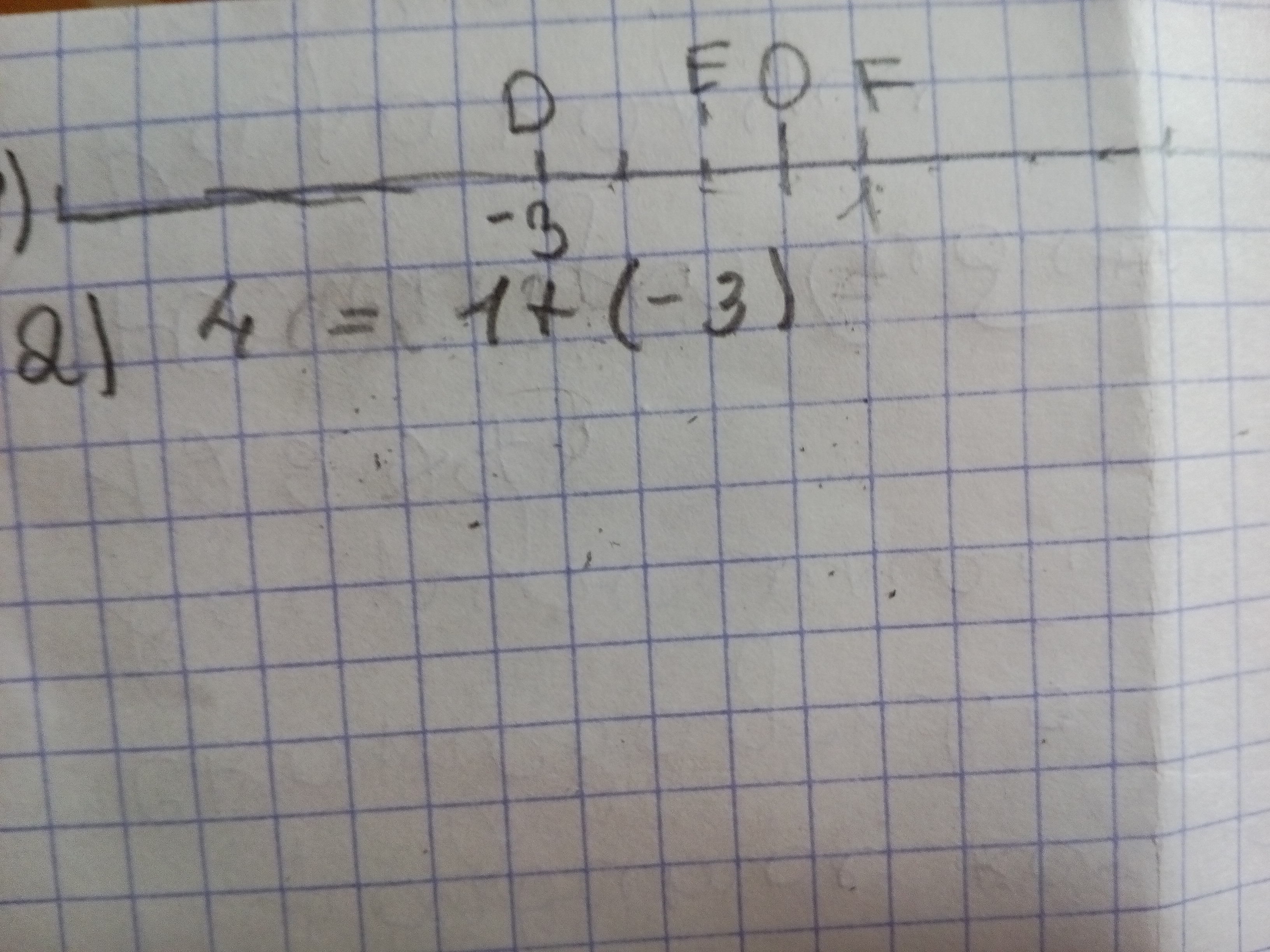 Точка Е(1,5), отмеченная на координатной прямой, расположена на одинаковом расстоянии от точек D(-3) и F.