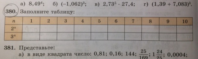 вот смотри вы изучали степень числа и получается ты считаешь и записы ваешь ответ то есть 1умножить на 1 ,2 умножить на 2и тд . А последнюю строку ты тоже считаешь и записываешь ответ то есть 1 умножить на 1 умножить на 1 ,2 умножить на 2 умножить на 2