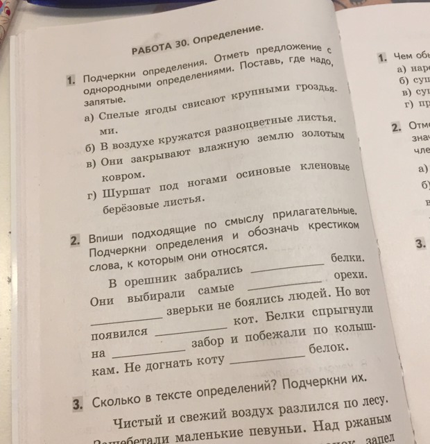 г) Шуршат под ногами осиновые(определение, подчеркивать волнистой линией), кленовые(определение, подчеркивать волнистой линией), березовые(определение, подчеркивать волнистой линией) листья.
