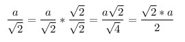 Умножим обе части на корень из 2, получим корень из2×а/2, под корнем пиши 2, в следующем окне а, под чертой 2