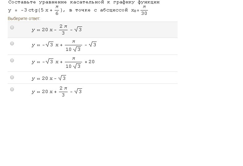Y=-√3+20(x-π/30)=-√3+20x-2π/3=20x-√3-2π/3