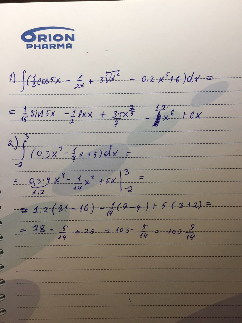 (3/5sin5x)'= 1/3cos5x что за бред? а вот в этом {-1/5x^5=-1/30x^6 в моем решение ошибка