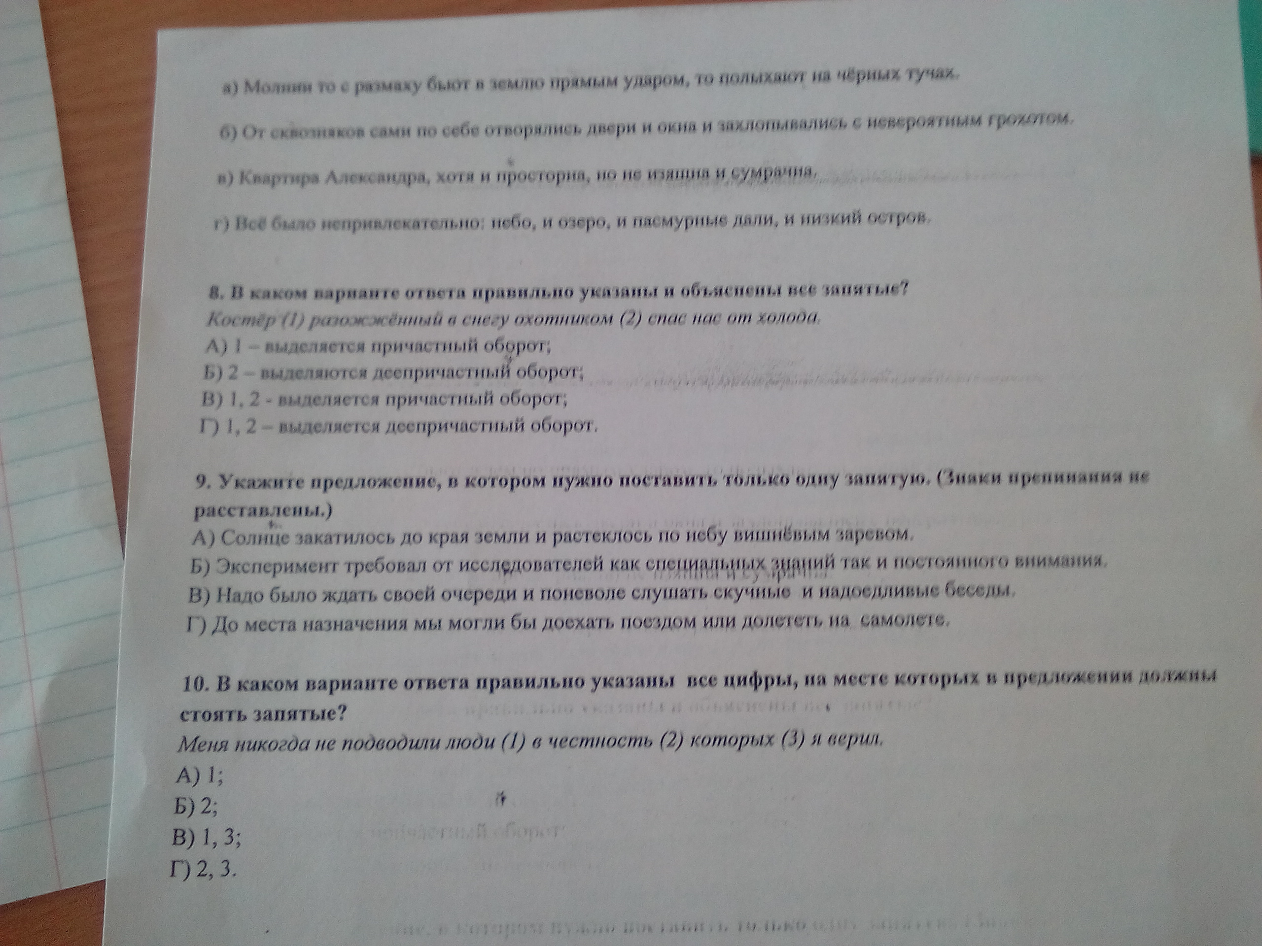 1-а, 2- г, 3- а, 4-б, 5-б, 6 -в, 7-?, 8-В, 9-Б, 10-А