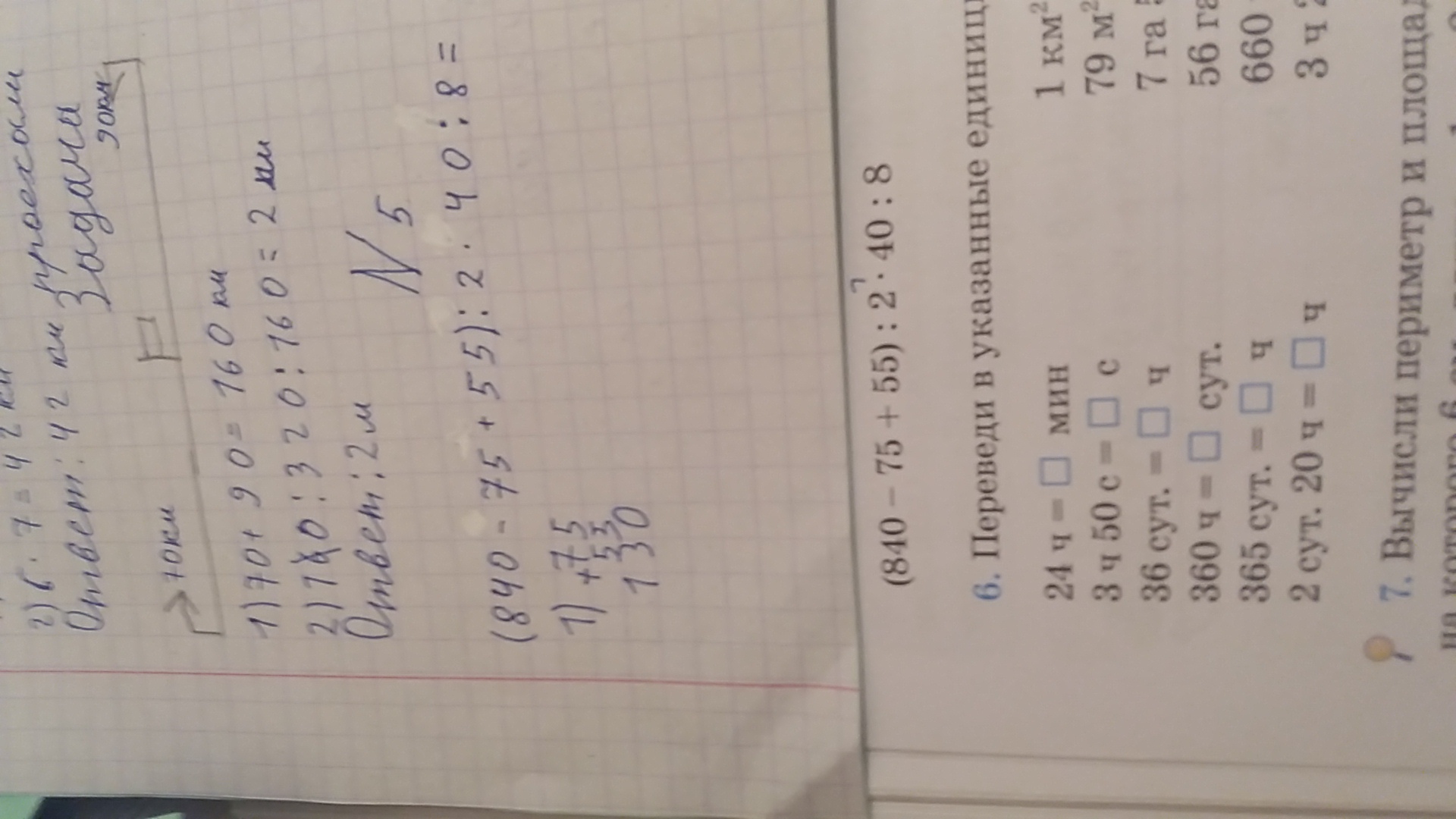 1)840 - 75=765