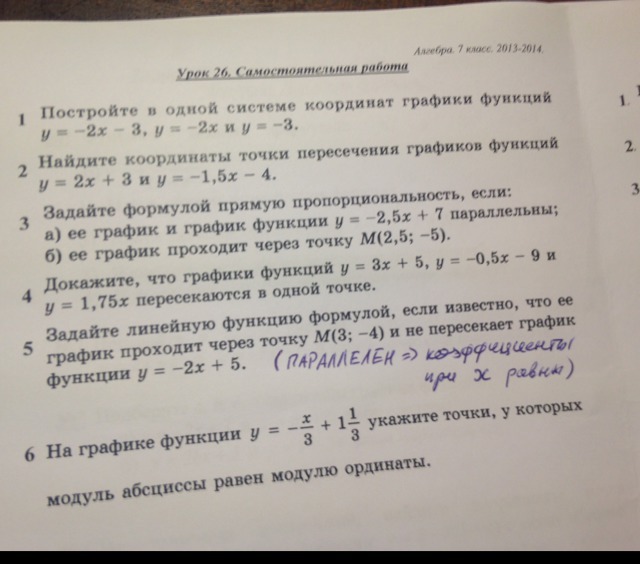 Найдите координаты точки пересечения графика функцией y = -2x + 3 и y = 1,5 - 4