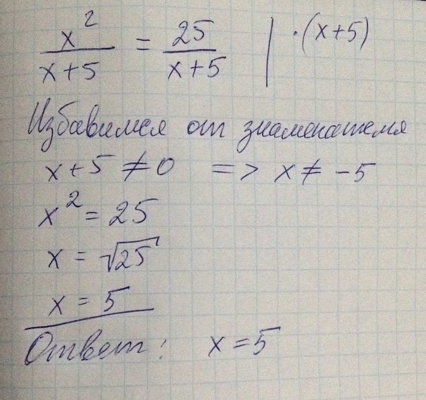 Задание 1) Для решения избавьтесь от знаменателя. По основному свойству дроби: если умножить числитель или знаменатель дроби на одно и тоже число, получим дробь равную данной.  Обращаем внимание, что х+5 в знаменателе не может быть равен нулю!!! Поэтому отдельной строкой смотрим, чему равен х+5=0, х=-5 - это не будет являться корнем уравнения ТОЧНО!