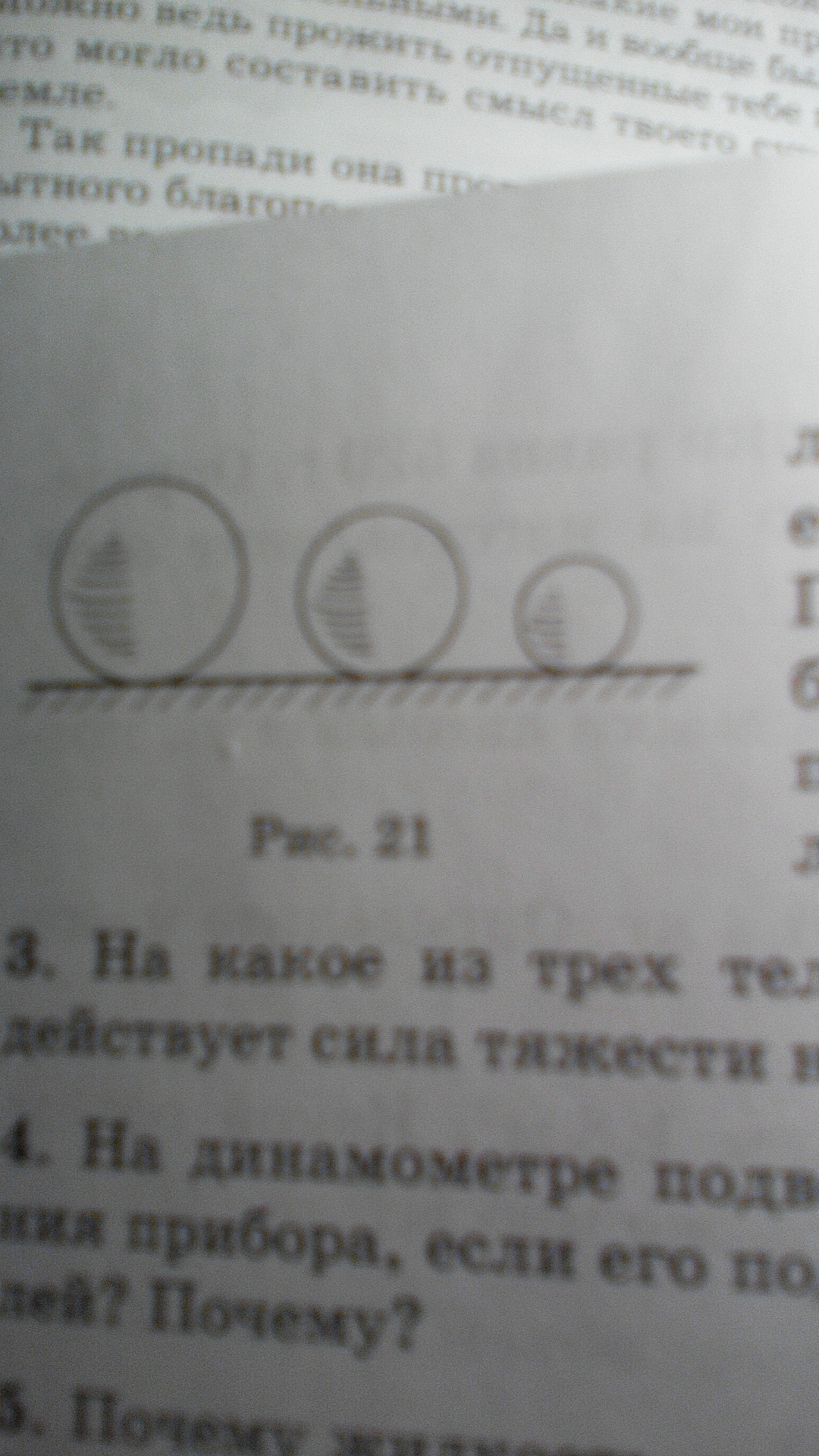 2. На какое из трех тел одинакового вещества (рис. 21) действует сила тяжести наибольшая? Наименьшая?
