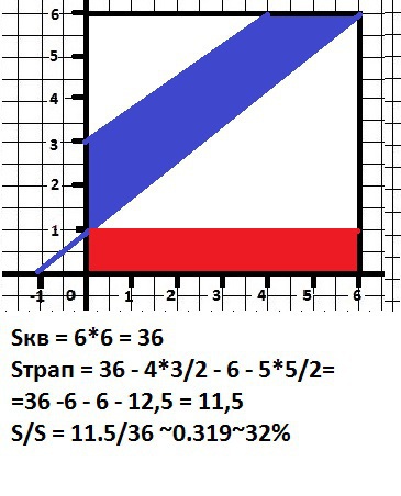 ОТВЕТ: 23/72 или ~32% площади квадрата.