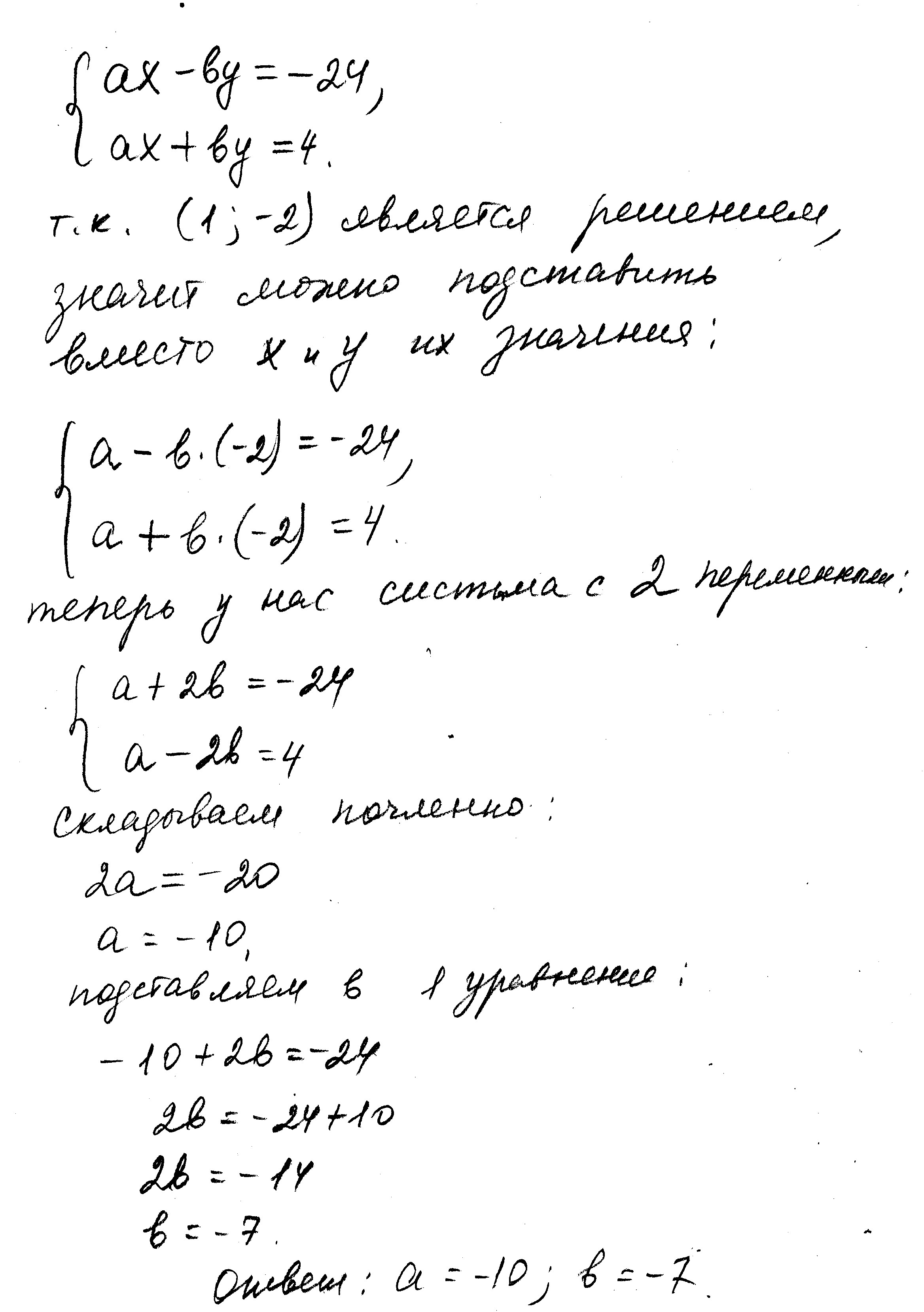 Пара чисел (1;-2) является ее решением. Найти значения a и b.