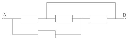 Найти сопротивление между точками А и B. Сопротивление каждого резистора равно 5 Ом.