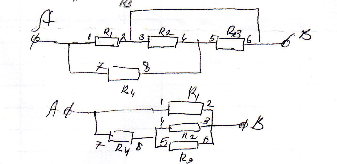 пронумеруем концы сопротивлений и преобразуем схему см. рис.