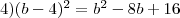 4) (b-4)^2=b^2-8b+16