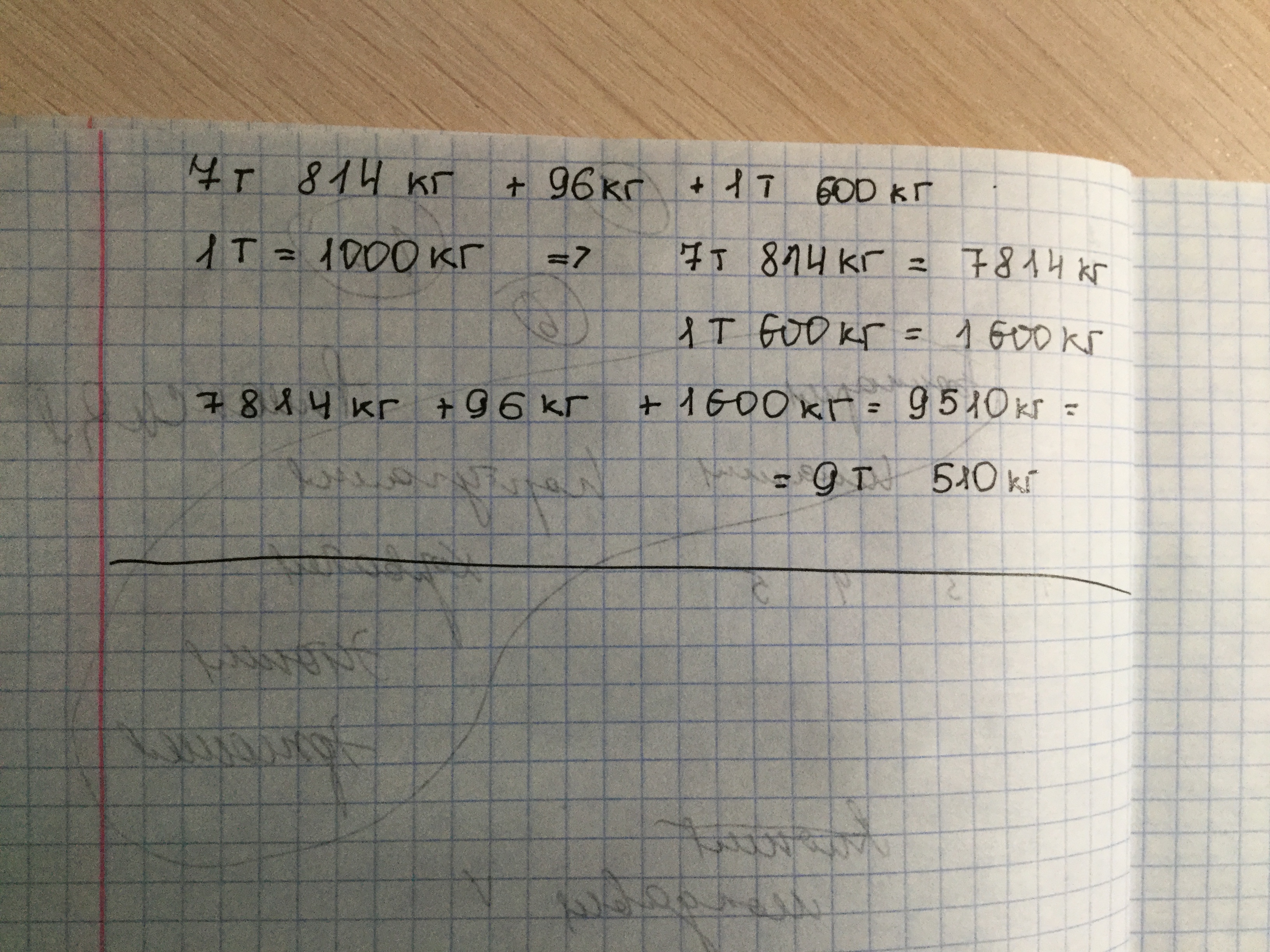 7т817кг+96кг+1т600кг. Это можно решить не переводя тонны в килограммы. 7т817кг+96кг=7т913кг+1т600кг=9т513кг.