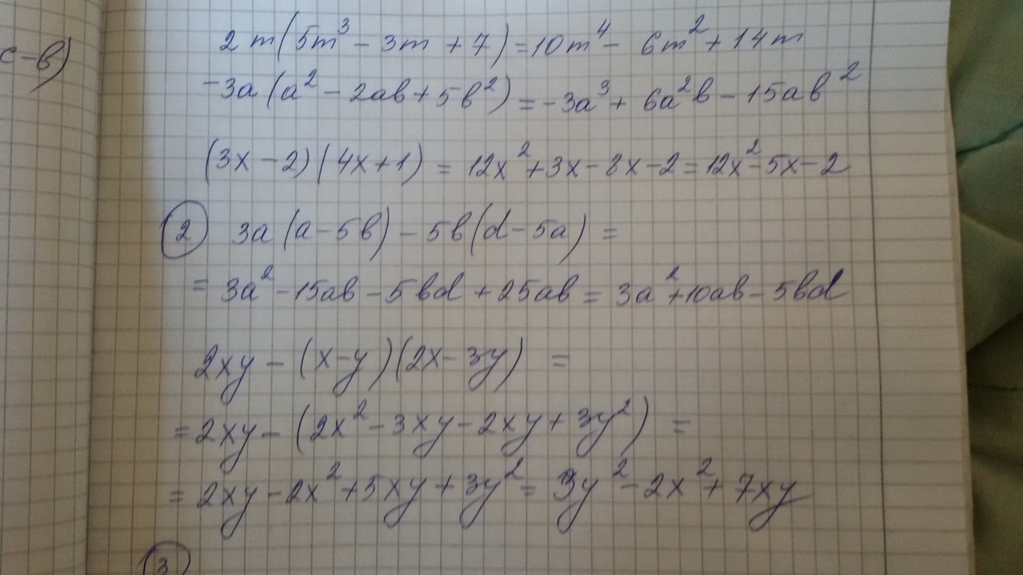 2. Запишите в виде многочлена: 3a(a-5b)-5b(d-5a), 2xy-(x-y)(2x-3y)