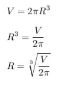 Из формулы объема цилиндра, у которого диаметр основания равен высоте, - V=2πr³, где r - радиус основания, выразите радиус.