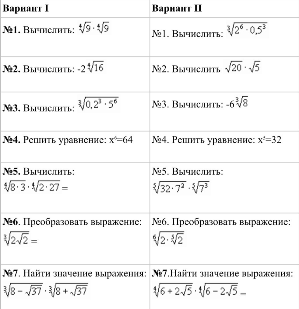 2 вариант №1. По свойству корня: корень из произведения равен произведению корней. Значит корень третьей степени из 2 в шестой степени умножить на корень третьей степени из о, 5 в третьей степени. Корень третьей степени из 2 в шестой степени равен 2 во второй степени или 4. Корень третьей степени из о, 5 в третьей степени равно 0,5. Итого 4*0,5=2