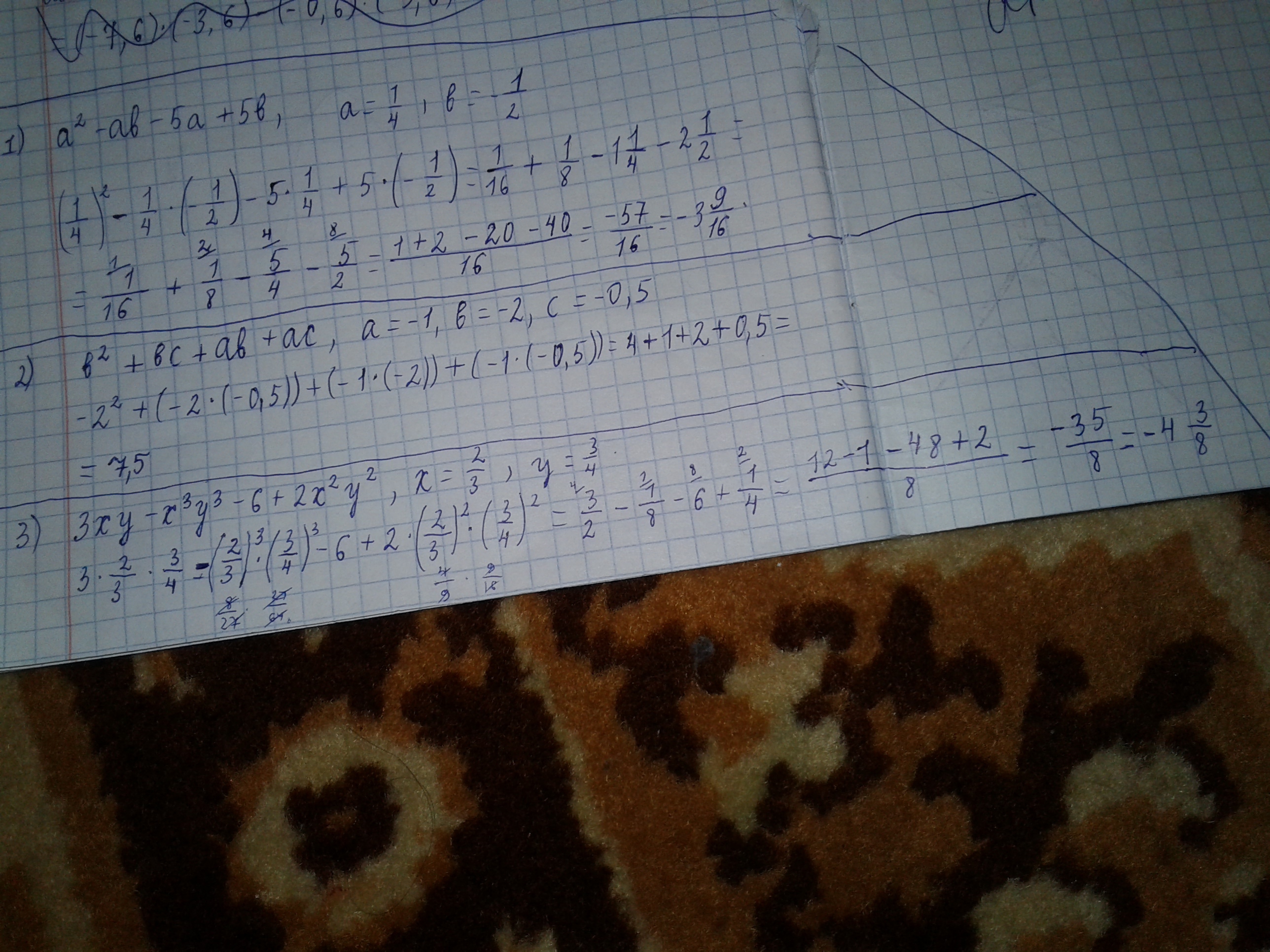 3xy - x^3y^3 - 6 + 2x^2 y^2 при х= 2/3, у= - 3/4