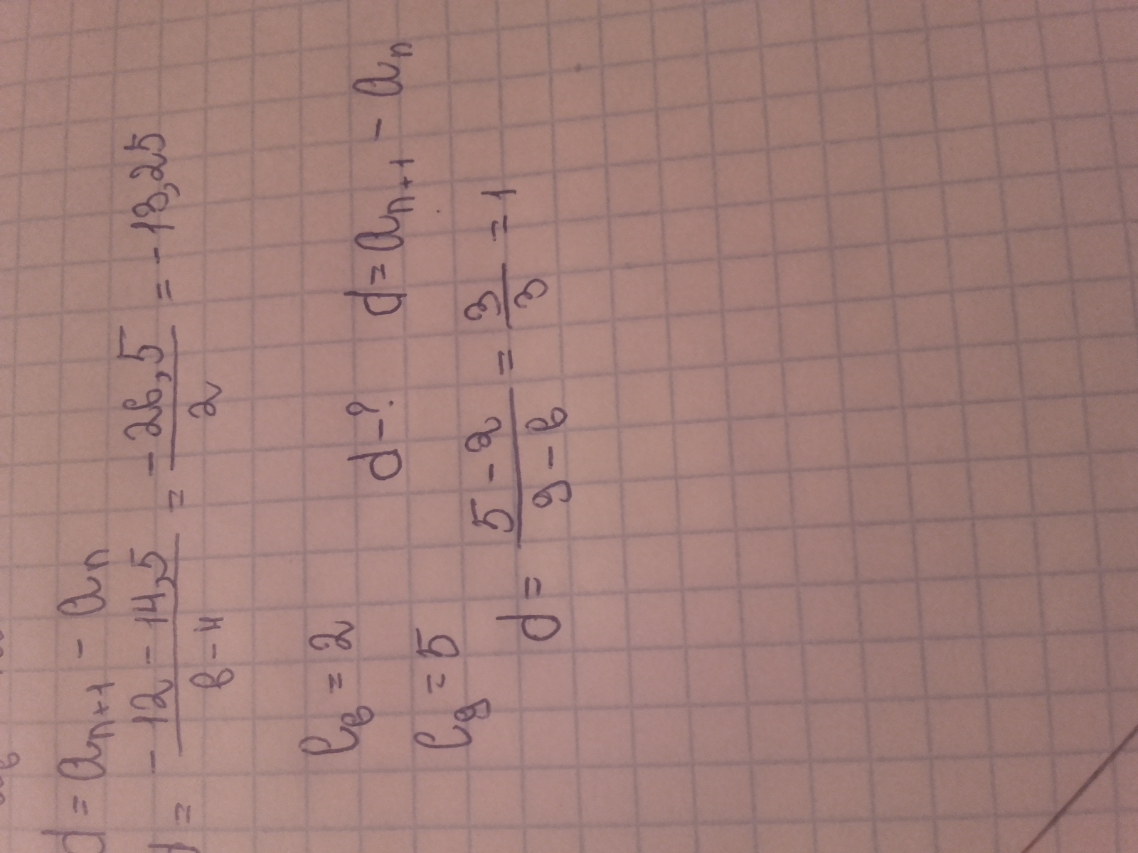 Расчет по главной формуле нахождения разности арифметической прогрессии(d)