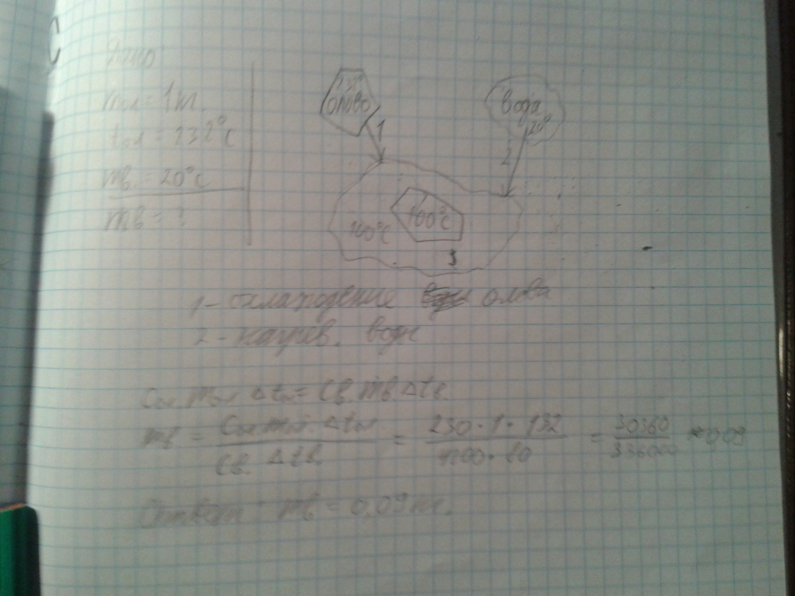 Сколько воды взятой при температуре 20 градусов можно довести до кипения влив в неё 1 кг олова при 232 градусов