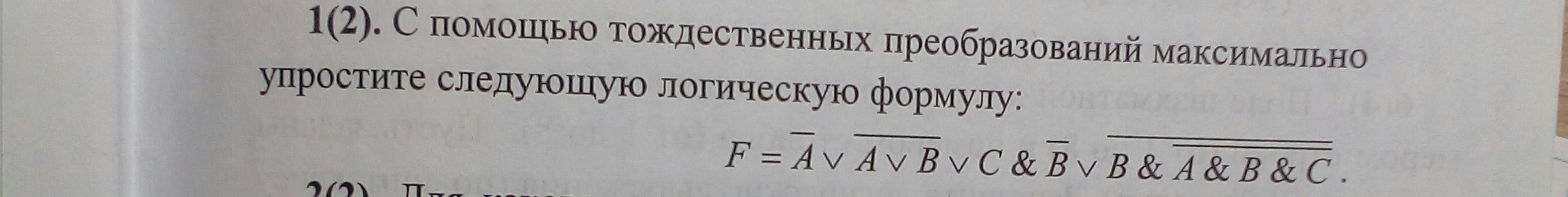 F=¬A+¬B+A*B*C (Формула: ¬A+A*B=¬A+B)
